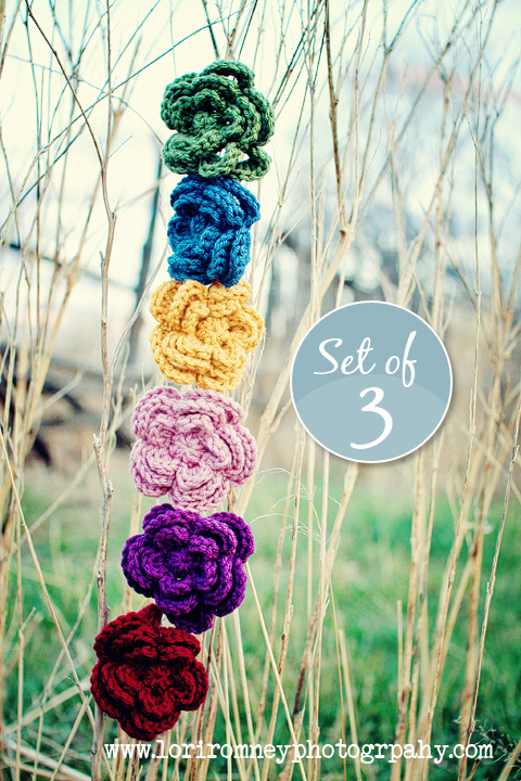 This cute little crochet flower can be worn as a clip or attached to a headband. With 5 petals and 3 layers, it measures about 3 1/4" in diameter. You may choose which type of clip to be used, if none is chosen it will come on a partially lined 45mm (1 ¾") alligator clip.